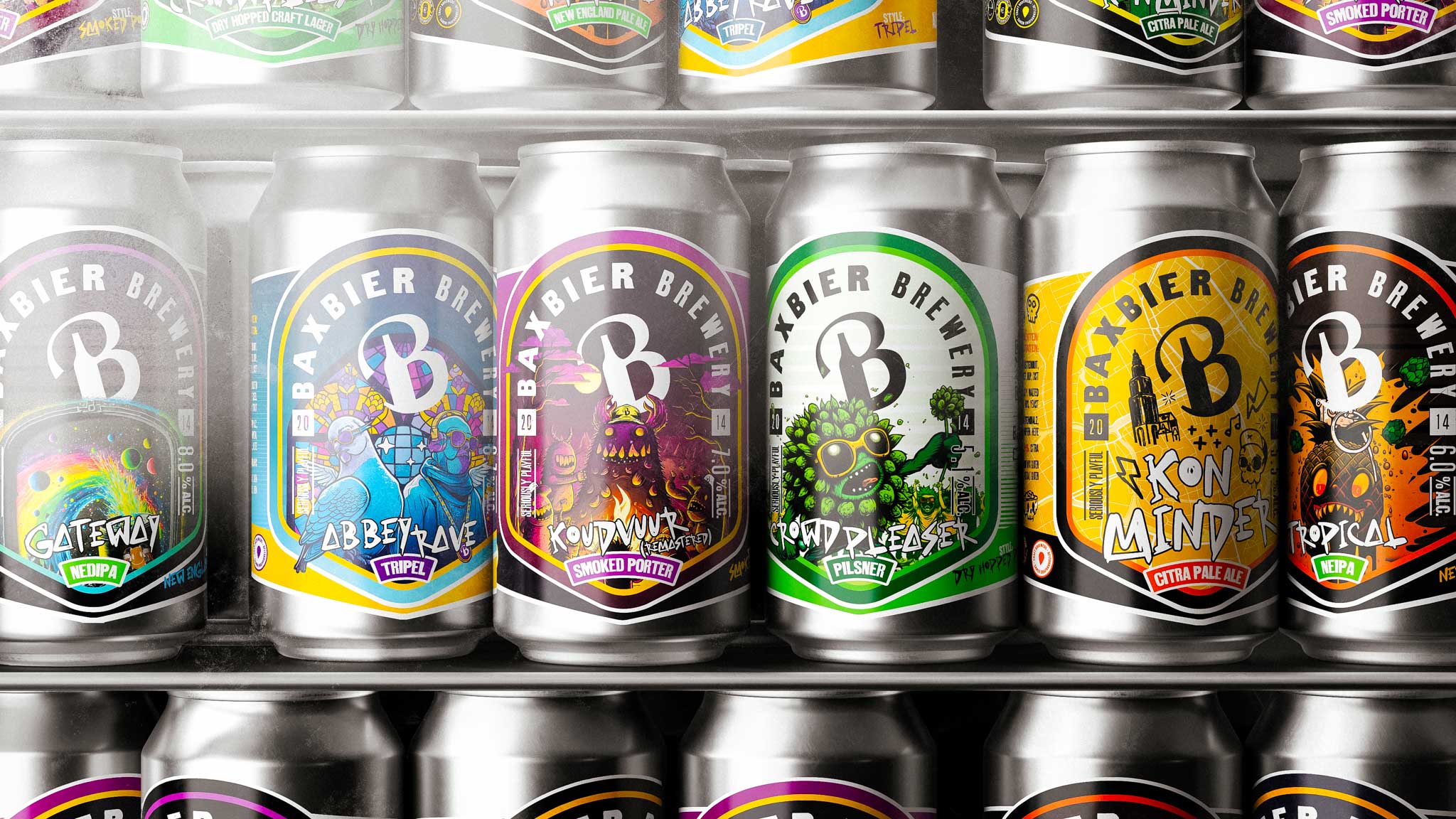 Elk design vertelt een eigen verhaal en voegt ondertussen toe aan de herkenbaarheid van het Baxbier merk.